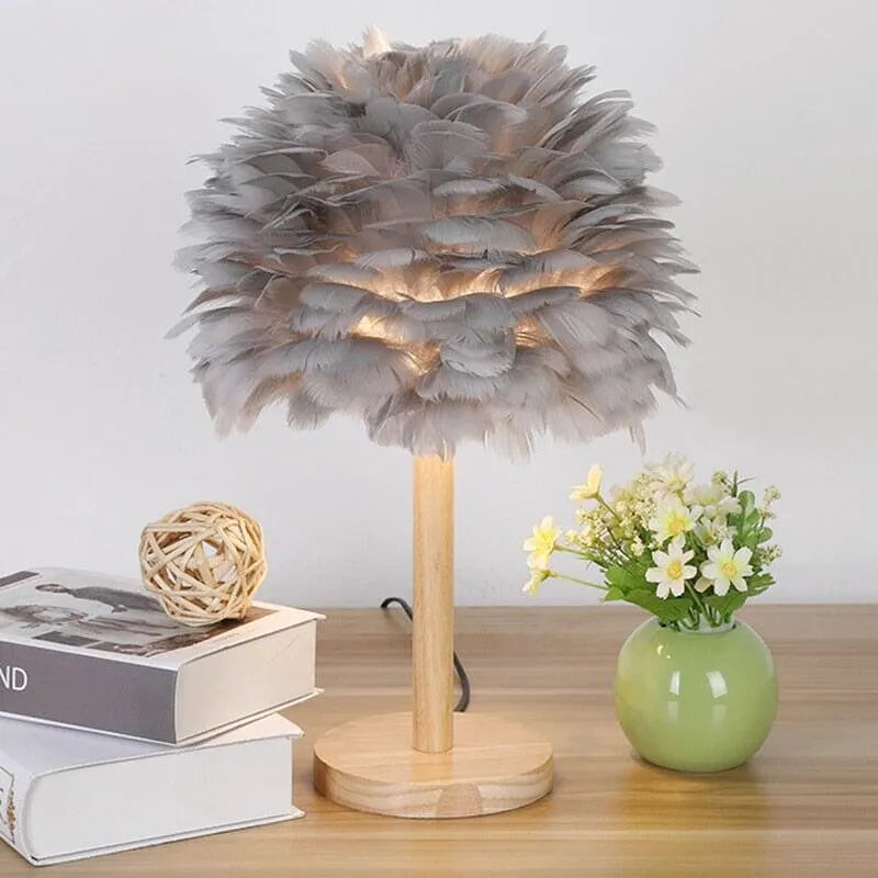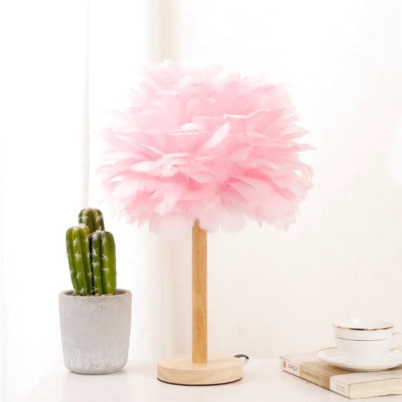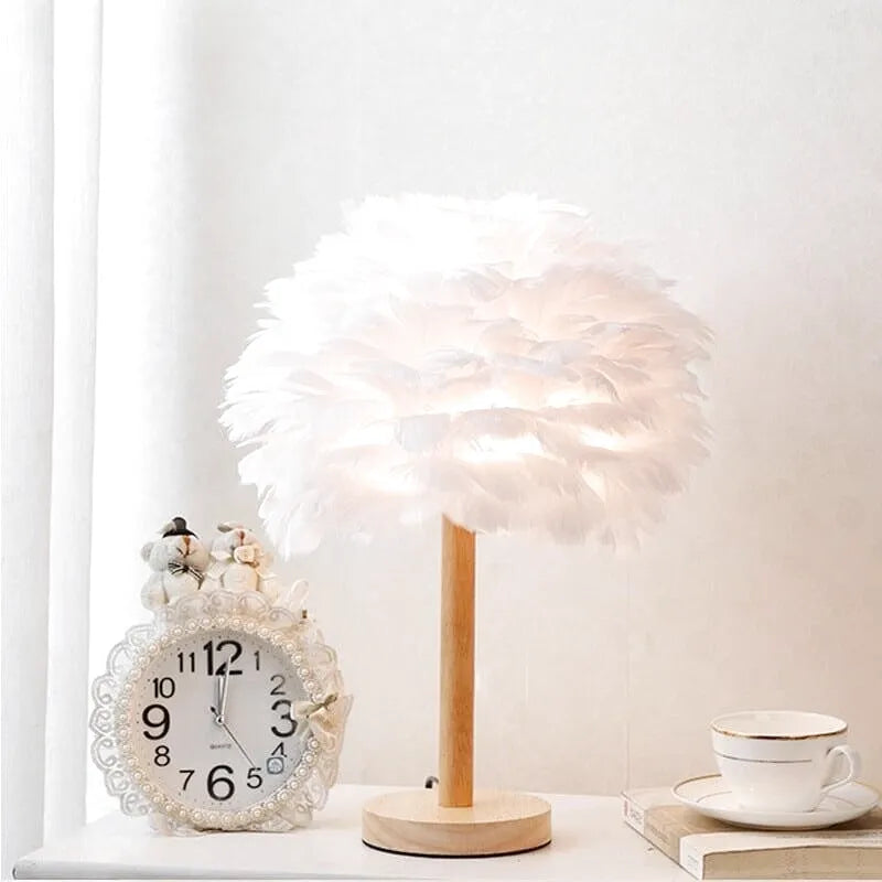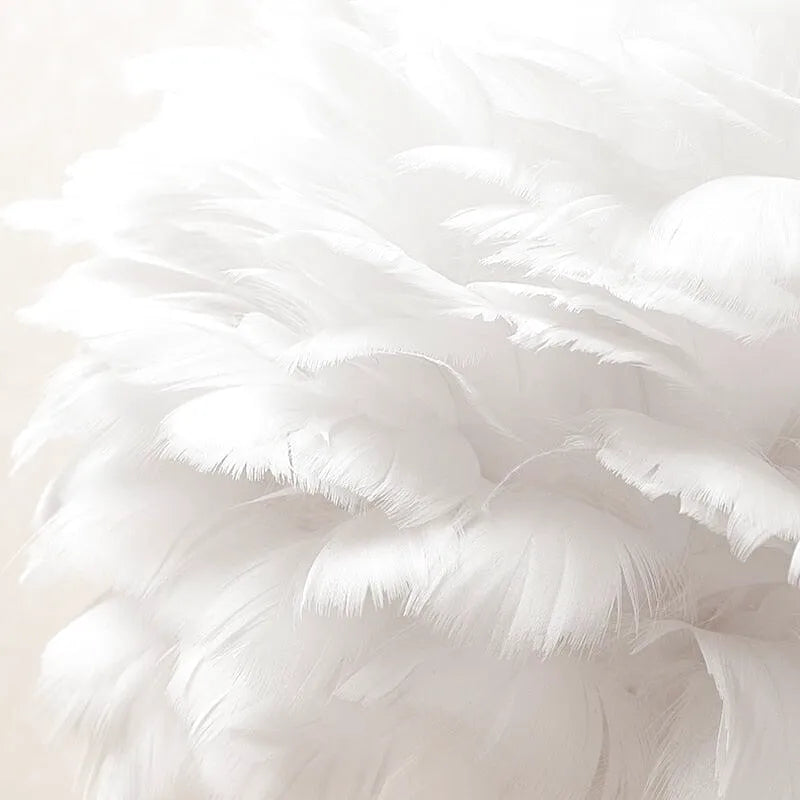 Med sitt originale, luftige design er denne nattbordslampen mye mer enn bare et lysobjekt: den er et dekorativt stykke i seg selv. Fjærskjermen gir et magisk og romantisk preg til rommet ditt, mens det myke lyset som slipper ut fra den innbyr til avslapning. Ideell for et koselig soverom, et lesehjørne eller en dempet atmosfære, kombinerer den delikat raffinement og unikhet.