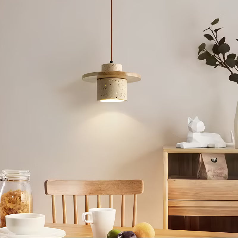 Kombinasjonen av travertin og av naturlig tre Denne pendellampen har en tidløs sjarm. Travertin, en naturstein med subtile fargetoner og unike teksturer, gir et organisk og autentisk preg, mens treverket gir varme og en naturlig følelse. Sammen skaper de en perfekt balanse mellom raffinement og enkelhet.