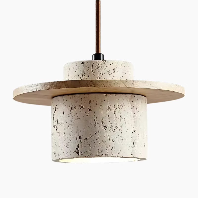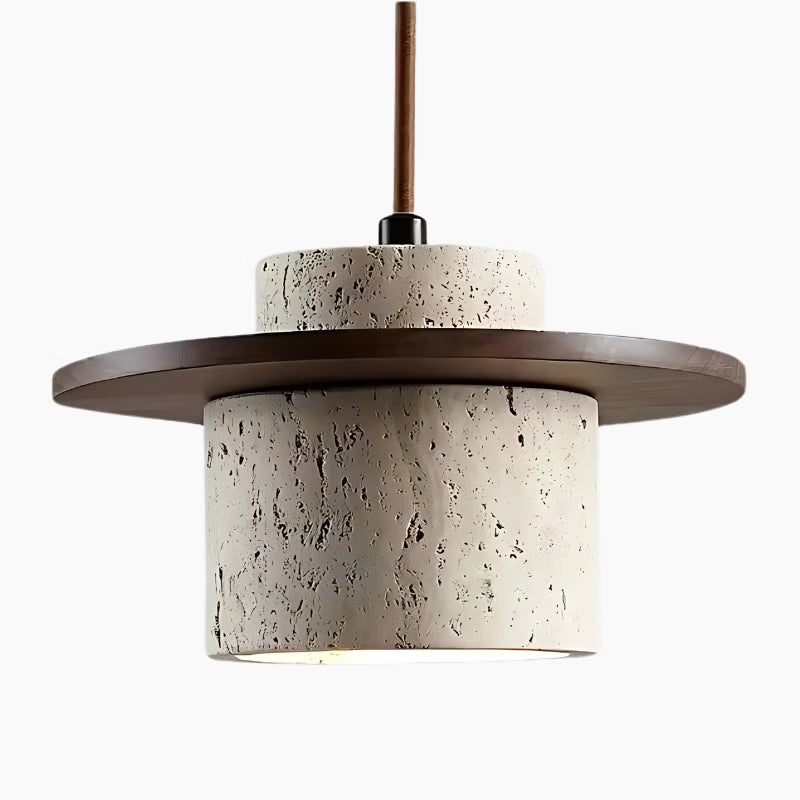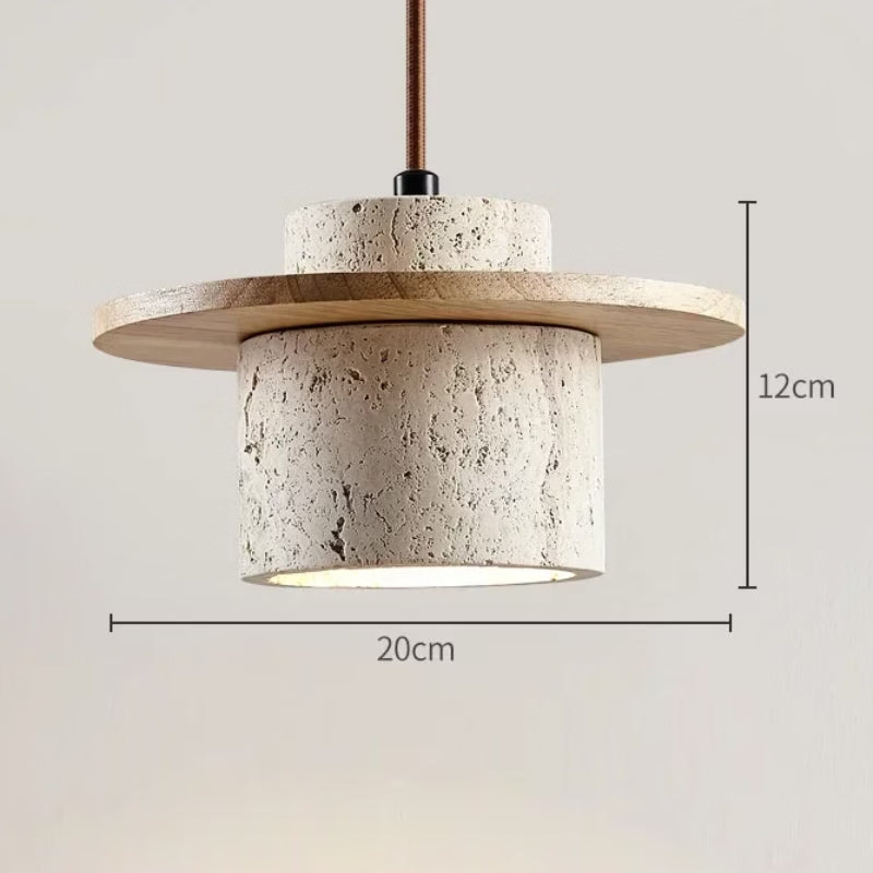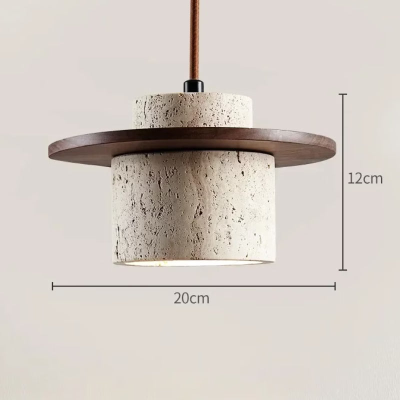 Hengelampen Stonewood feirer organisk raffinement, med en solid travertinkjerne kombinert med en flat valnøtt- eller treskive. Bøk. Den rene, sylindriske silhuetten skaper en estetikk som er både moderne og solid, og tilbyr varm, diffus belysning som forbedrer både elegante, moderne rom og koselige interiører.